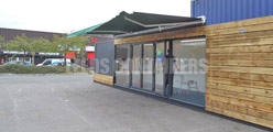 Sometimes the industrial look of a container just does not fit into the environmental surroundings, no matter what colour the container is. We have solved this issue with the help of timber cladding. With a self-supporting timber baton frame we can ensure that the container walls won’t be perforated in the process, in order to uphold the wind and water tight nature of the container.