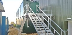 When containers are stacked, and access is required on all levels, container staircases can be fabricated and installed to provide safe access. These staircases are used with multi-storey conversions such as offices, homes and exhibition stands. Available in a wide range of styles, sizes and colours, our staircases can be fabricated to meet your specific needs.